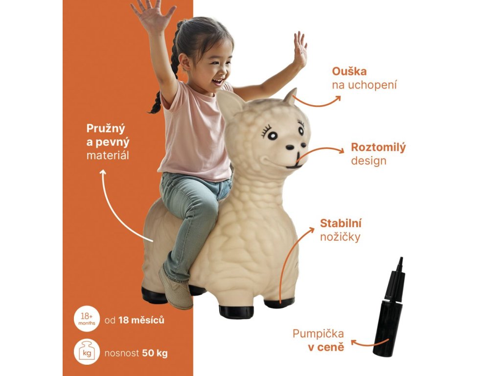 Veselé nafukovací hopsadlo Skippy ve tvaru zvířátka nebo dopravního prostředku je ideální hračkou pro každé aktivní batole. Děti si ho zamilují na první pohled – barevný, roztomilý kamarád přímo vybízí ke skákání, hopsání a veselému dovádění.