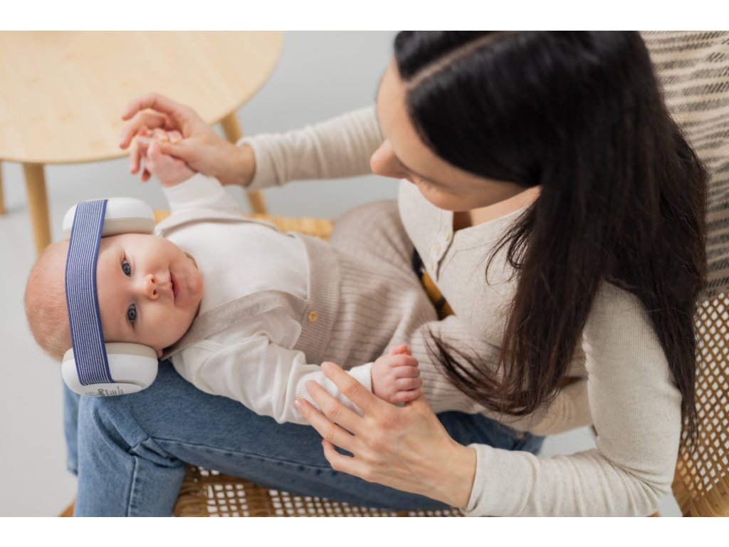 Ochranná sluchátka pro kojence a malé děti s nastavitelným a flexibilním náhlavním páskem.