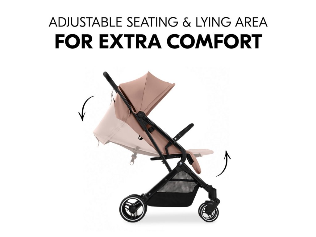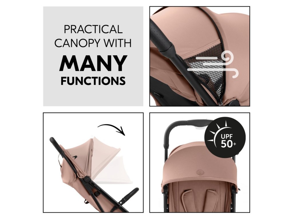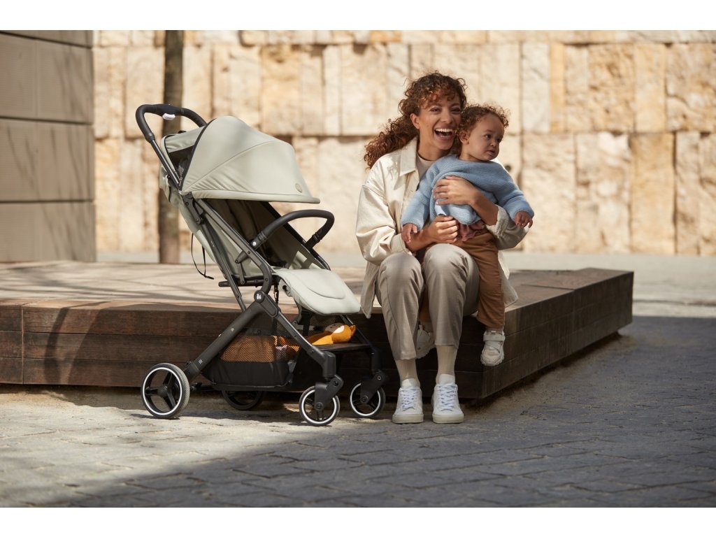 Díky odpružení tlumícímu nárazy a kolečkům pro hladkou jízdu odolným proti propíchnutí si vaše dítě užije pohodlnou jízdu. Rychlé manévrování nákupním centrem je díky otočným kolečkům hračkou. Když chce vaše dítě spát, můžete jednoduše sklopit opěrku zad jednou rukou. Sluneční stříška s UV ochranou 50+ nabízí příjemný stín, zatímco síťovaná okénka poskytují dostatečnou cirkulaci vzduchu.