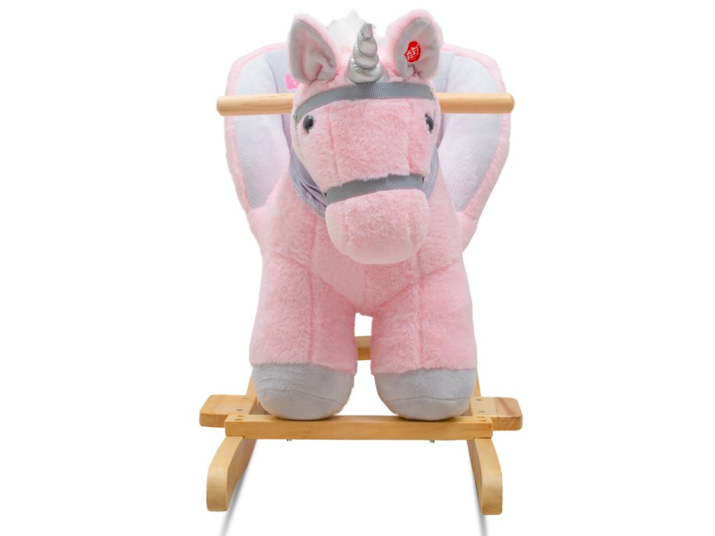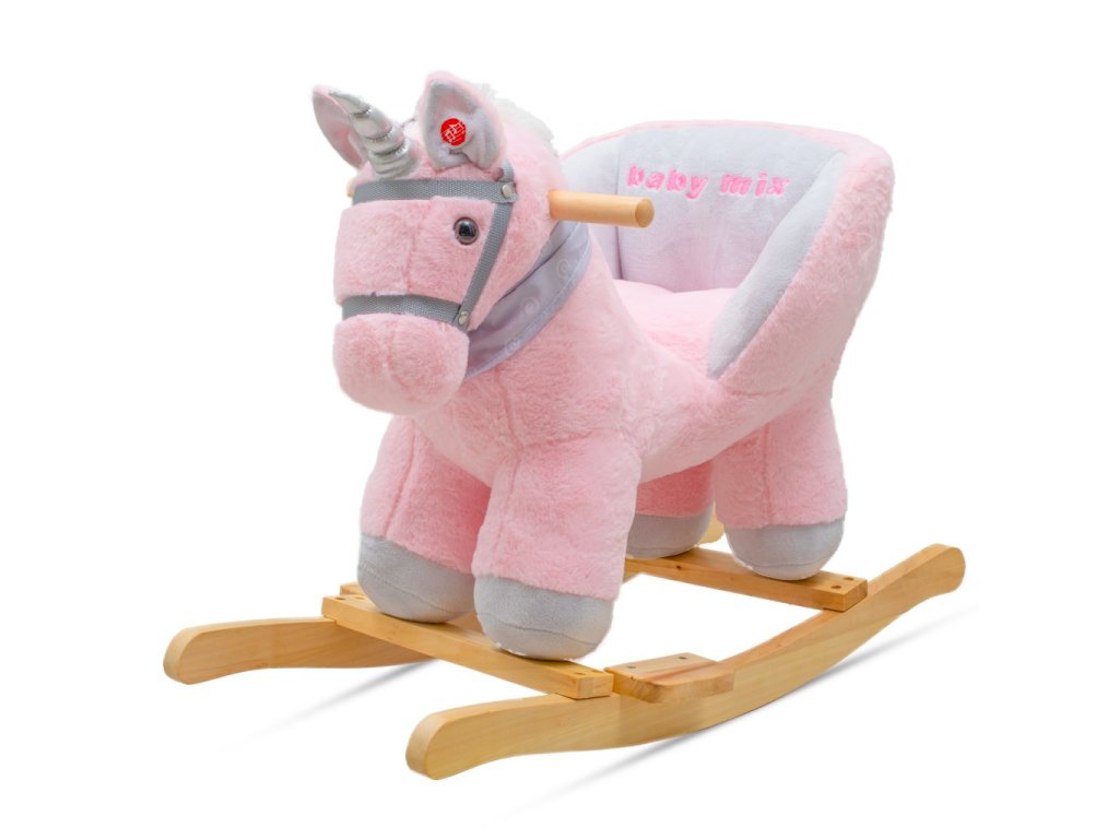 Růžový houpací koník–jednorožec značky Baby Mix je výjimečná hračka, která okouzlí každé dítě a stane se jeho nejlepším parťákem na hraní. Je vyrobený z měkkého, příjemného plyše a stojí na stabilních dřevěných lyžinách, což zajišťuje bezpečnou a pohodlnou hru.