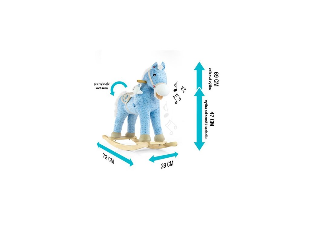 - koník má sedlo, dřevěné rukojeti a dřevěné stupátka no nohy