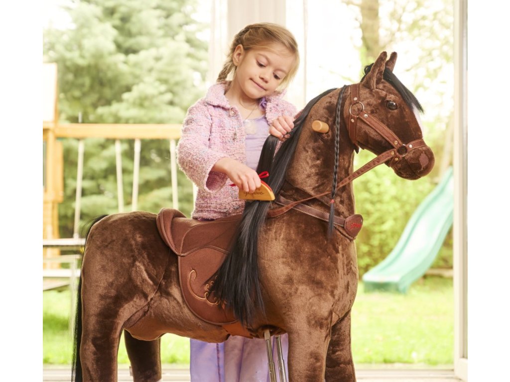 Houpací kůň jen závistivě kouká v koutě na to, jak dítě kolem projede jako na skutečném černém koni. Mechanický jezdící koník Ponnie se rozjede pravidelným nasedáním a vysedáním ze sedla. Směr jízdy si určuje jezdec natáčením madel. Kůň je poháněn pouze pohyby dítěte. Nemá motor a nepotřebuje tudíž k pohybu žádné baterie.