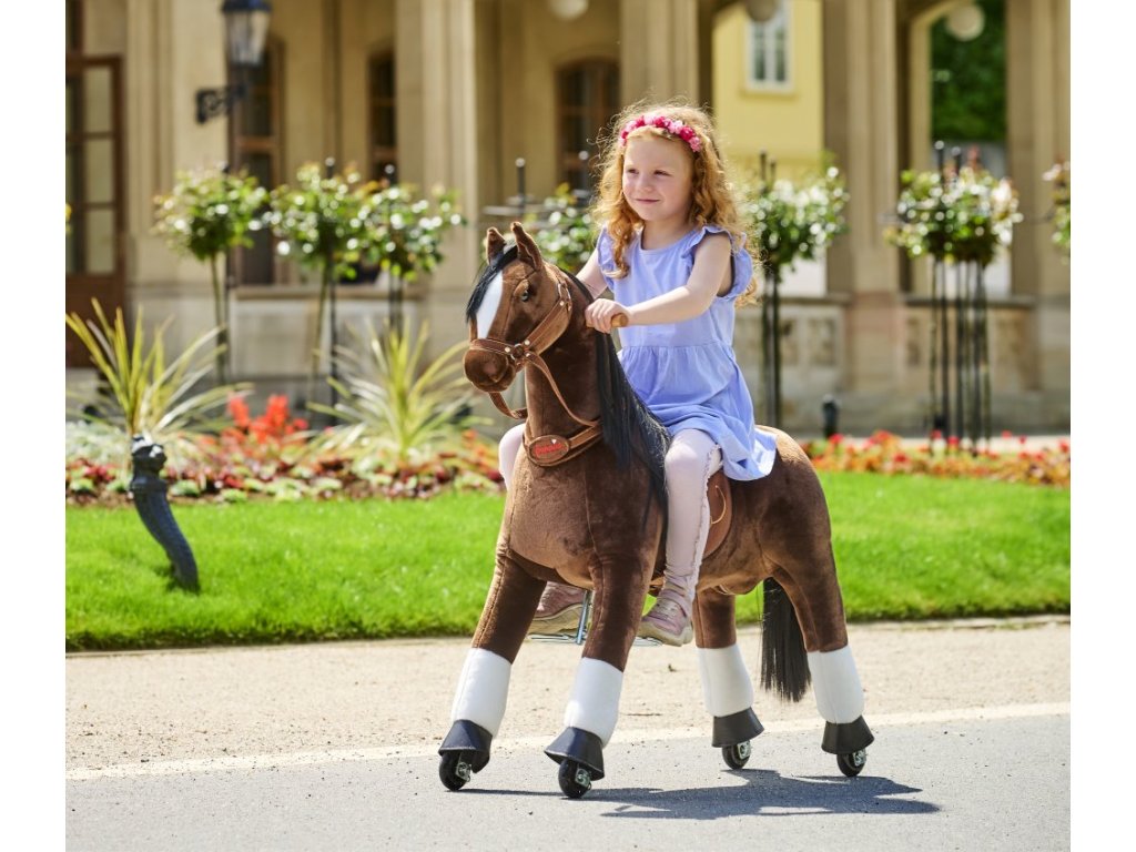 Jezdící koníci Ponnie rozvíjejí koordinaci pohybů a rovnováhu dítěte. Při jízdě dítě zapojuje důležité svalové partie, které nejsou běžně zatěžovány a koník tak pomáhá zdravému vývoji dítěte. Na koníkovi si zajezdíte doma i venku. Má kolečka z bezbarvé gumy (černý vzhled dodává kolečkům vnitřní černá plastová výztuž koleček), takže nepoškrábe ani nezabarví parkety či plovoucí podlahu. Venku je ideální k ježdění zpevněný rovný povrch jako je asfalt nebo zámková dlažba.