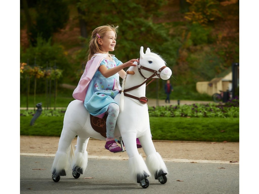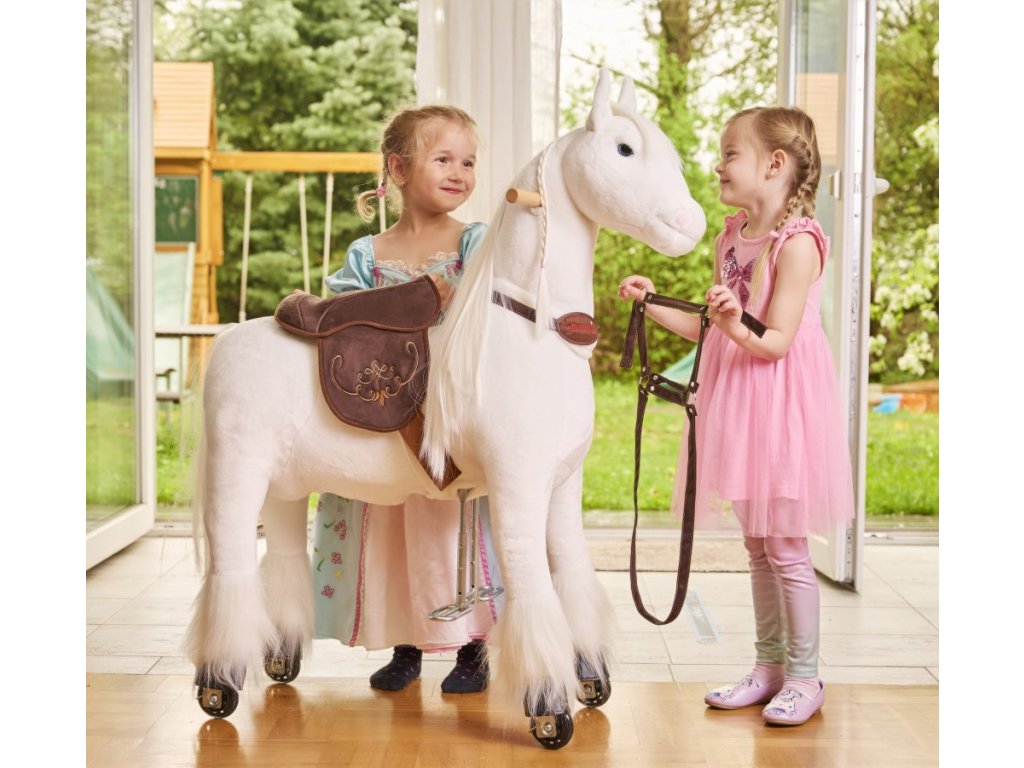 Jezdící kůň Ponnie M je určený pro děti ve věku 5-12 let, max. váha jezdce 50 kg, doporučená výška jezdce 110-140 cm, vzdálenost mezi sedlem a stupátkem je 40-51 cm, výška sedu 65 cm.