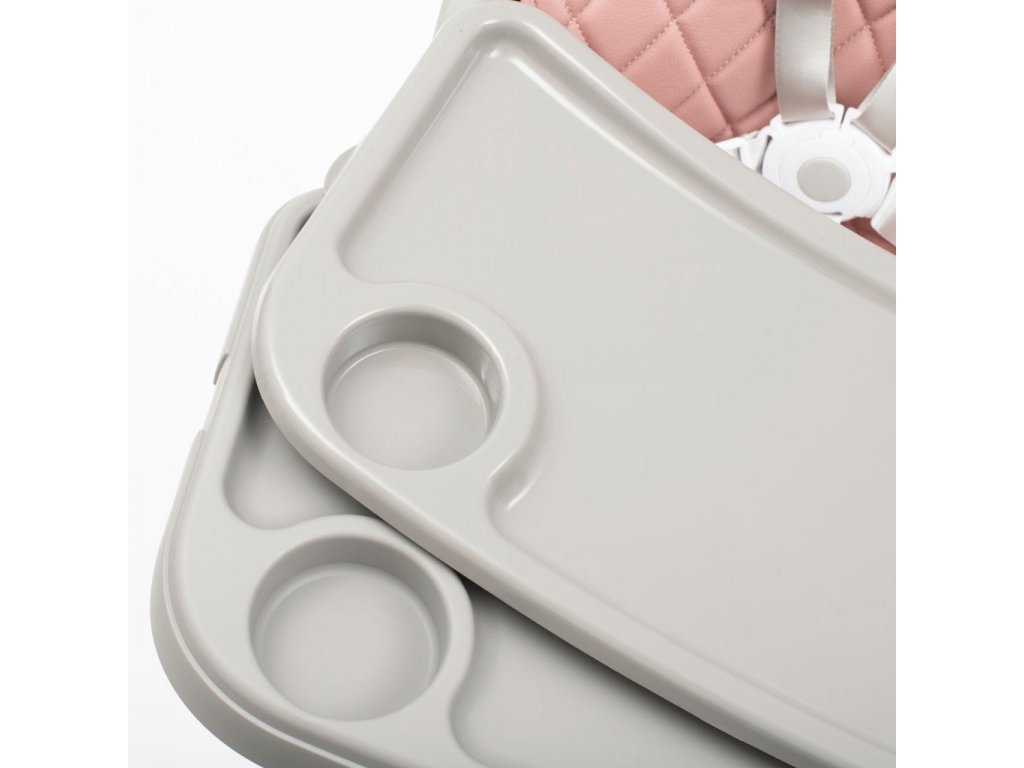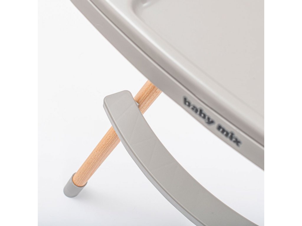 Jídelní židlička Baby Mix má všechny funkce, které usnadňují každodenní krmení: nastavitelný dvojitý tácek, 5bodové pásy, odnímatelné čalounění z eko kůže, opěrka nohou, látkový koš, protiskluzové nožičky. Židli lze snadno přeměnit na nízkou židli odstraněním spodní části nohou.Jídelní židlička Baby Mix je vhodná pro děti ve věku 6-36 měsíců.