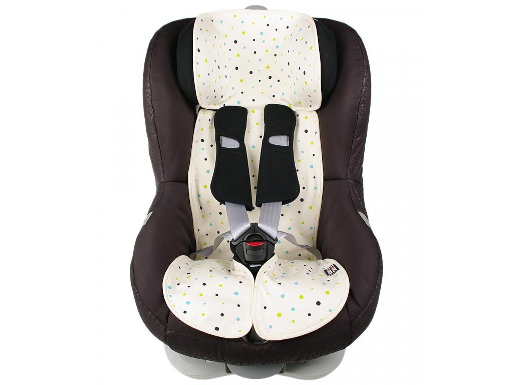 Vložka s prodyšnou 3D spodní stranou a hebkou vrchní stranou ze 100% bio-bavlny s motivem puntíků. Vložka pasuje do 99% dětských autosedaček velikosti 9 až 36 kg. Vložka ochrání autosedačku před zašpiněním. Vložku lze prát v pračce na 30 °C, vyrábíme v ČR: