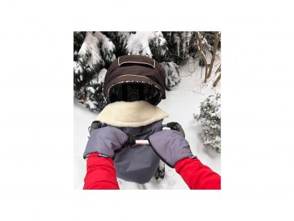 Šedý rukávník z ovčí Merino vlny ochrání ruce před chladem i deštěm. V zimním období je nutné každou chvíli otírat miminkům nos a s rukavicemi je to velmi obtížné - po několikerém sundání a nandání rukavic dáte rukavice do kapes a raději mrznete. Rukávník tomuto zabrání - ruce máte v teple, ale bez rukavic. Rukávník je dosti velký a vhodný i pro kočárky s brzdou i pro tatínky, kteří mají velké ruce. Vrchní vrstva je z nepromokavé plášťoviny, vnitřní vrstva z ovčí vlny Merino a uvnitř je zateplený oteplovacím rounem značky Valtherm.