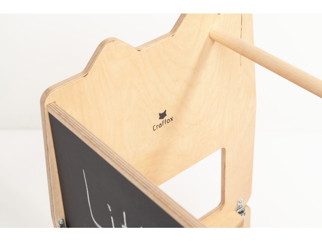 Učící věž Craffox je víceúčelová. Slouží nejen jako kuchyňská učící věž, ale snadnou přestavbou se z věže stane stůl se židlí pro jedno nebo dvě děti. Na zadní straně věže je křídová tabule, na které mohou děti rozvíjet svoje výtvarné umění.