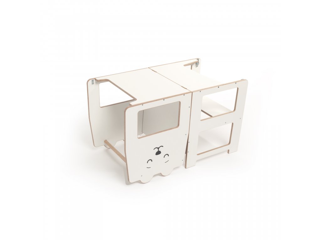 - Víceúčelová - slouží jako učící věž, dětský stůl se židlí i jako tabule na kreslení