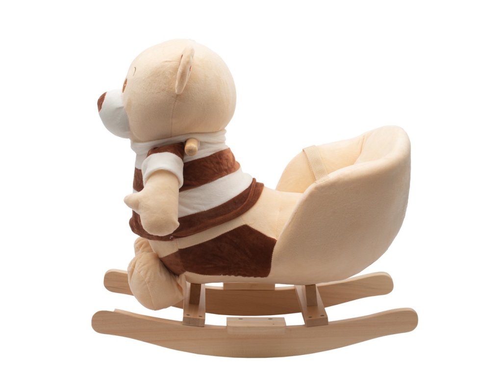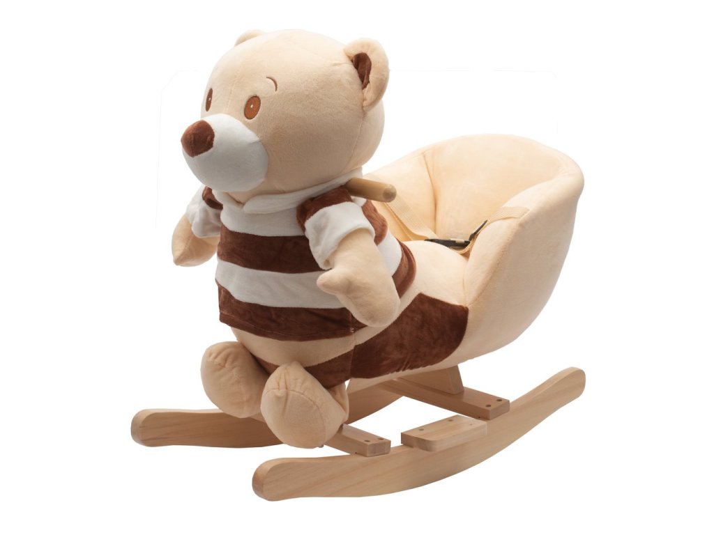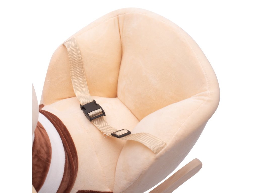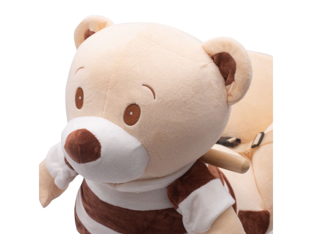 Houpací medvídek PlayTo má sedlo, dřevěné rukojeti a dřevěná stupátka na nohy. Houpání je pro malé děti velmi zábavné procvičuje držení rovnováhy. Medvídek po zmáčknutí ouška hraje melodii. Dítě si samo dokáže z křesílka dosáhnout na ouško a spustit hudbu. Medvídek je vyroben z kvalitního měkkého plyšového materiálu, díky čemuž si Vaše dítě může dlouho užívat skvělou zábavu. Sedlo je díky optimálnímu tvaru pohodlné a bezpečné. Dítě lze připoutat pomocí bezpečnostního pásu.