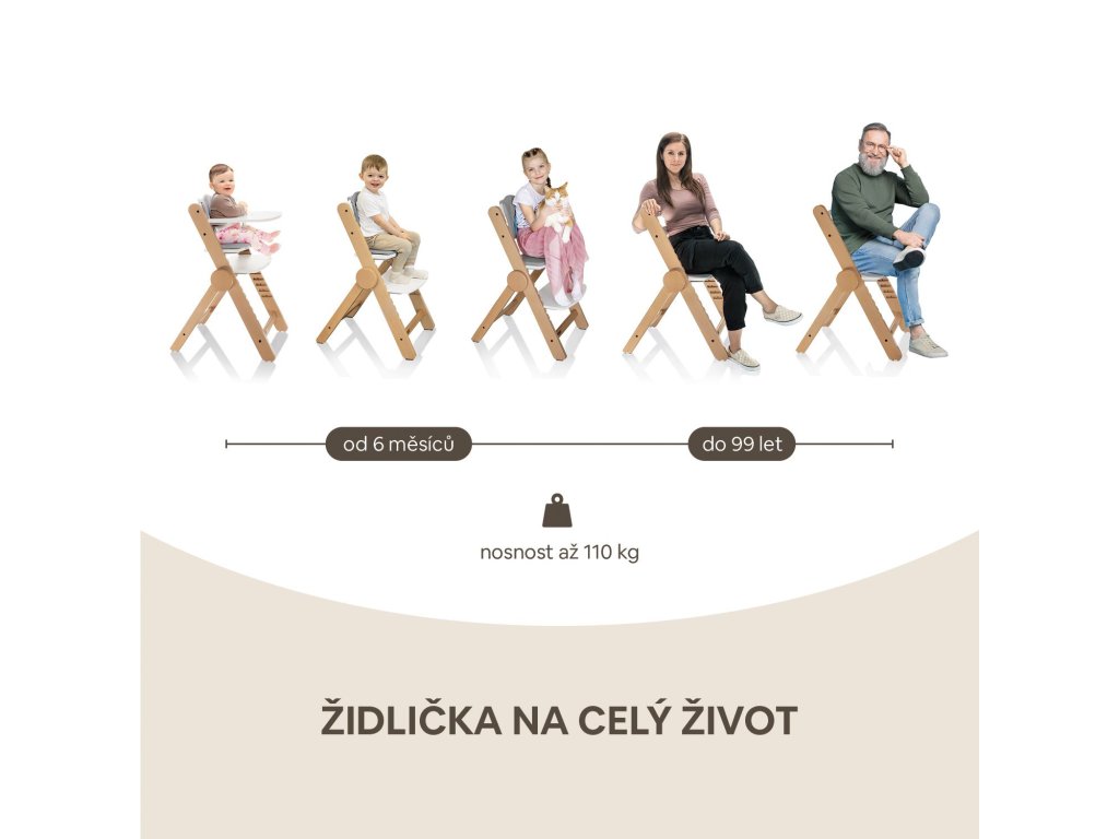 Výběrem dřevěné židličky minimalizujete použití plastů, což zajišťuje ekologičnost a snadnou recyklovatelnost produktu a mnohonásobně delší dobu používání až do 110 kg