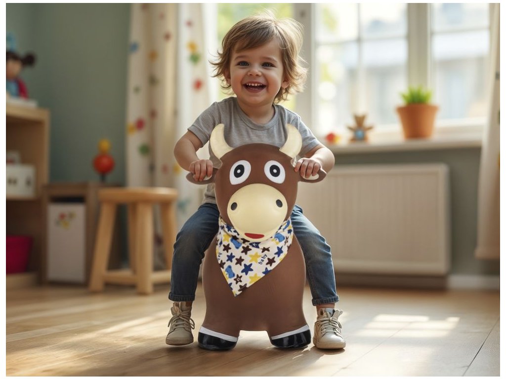 Veselé nafukovací hopsadlo Skippy ve tvaru zvířátka nebo dopravního prostředku je ideální hračkou pro každé aktivní batole. Děti si ho zamilují na první pohled – barevný, roztomilý kamarád přímo vybízí ke skákání, hopsání a veselému dovádění. Skippy nejen zabaví, ale zároveň pomáhá rozvíjet motoriku, rovnováhu a posiluje svaly celého těla. Ergonomický tvar s ušima sloužícími jako držadla zajišťuje pohodlný a bezpečný pohyb. Hodí se do bytu i na zahradu. A co je nejlepší? Skippy je snadno přenosný. V balení najdete i praktickou pumpičku, takže hopsadlo během chvilky nafouknete i vyfouknete – ideální na cesty k prarodičům, na chalupu nebo kamkoliv jinam. Vhodný pro děti od 18 měsíců Ergonomický design pro pohodlné a bezpečné skákání Podporuje rozvoj motoriky a rovnováhy hravým způsobem Bez obsahu ftalátů Do interiéru i exteriéru Snadno skladný – dá se vyfouknout Praktická pumpička v balení Maximální nosnost: 50 kg Skippy Dino: 59 × 22 × 50 cm Skippy Unicorn (White/Pink): 60 × 23 × 52 cm Skippy Dog (White/Grey): 53 × 24 × 45 cm Skippy Horse: 53 × 24 × 45 cm Skippy Deer: 47 × 21 × 45 cm Skippy Bull: 55 x 28 x 49 cm Skippy Lama: 50 x 22 x 52 cm Skippy Elephant: 63 x 37 x 44 cmSkippy – Hopsadlo pro radost, pohyb a zdravý vývoj