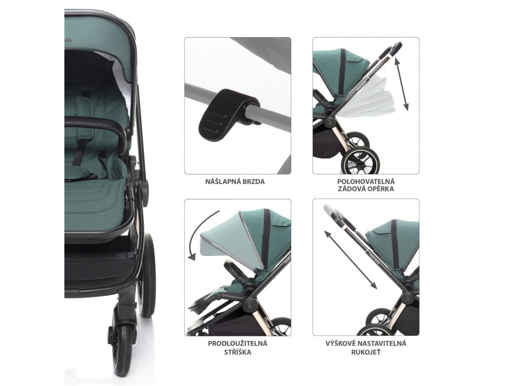 Výškově nastavitelná rukojeť zajistí, že kočárek mohou pohodlně vozit všichni členové rodiny bez ohledu na jejich výšku.