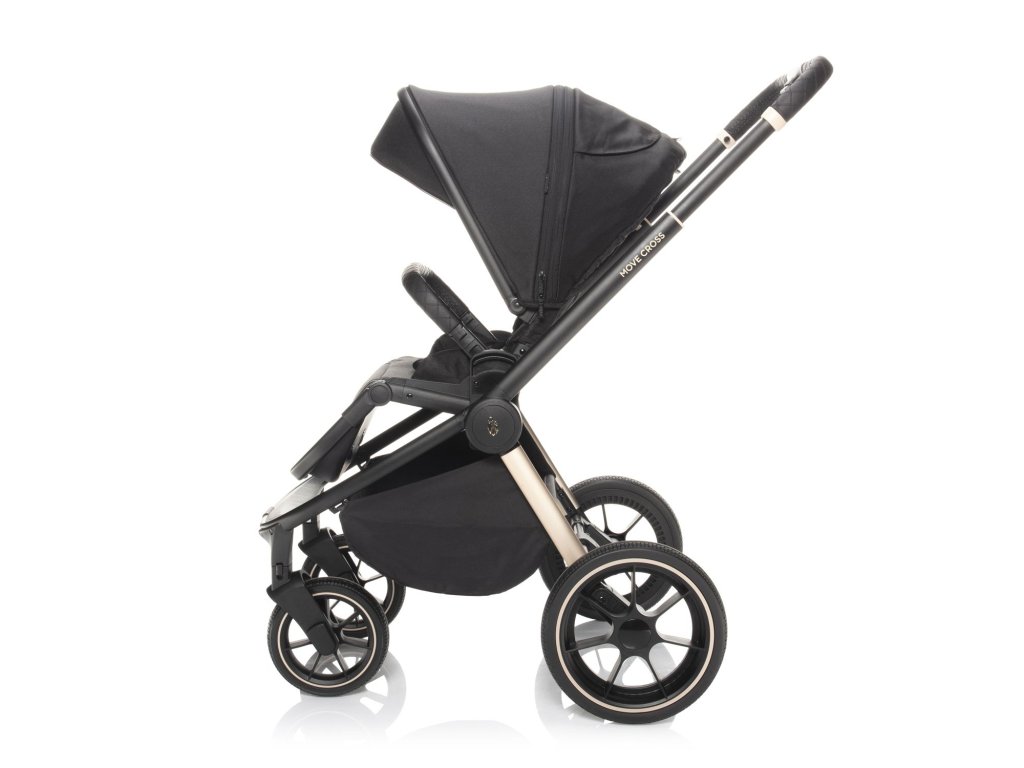 Velká, gumová kola s perfektním odpružením, prostorné polohovatelné sezení, výškově nastavitelná stříška, prodloužená opěrka na nožičky, zádová opěrka s odvětráním, jízda po i protisměru, výškově nastavitelná rukojeť – to je kočárek Move Cross 2. Od narození do 22 kg.