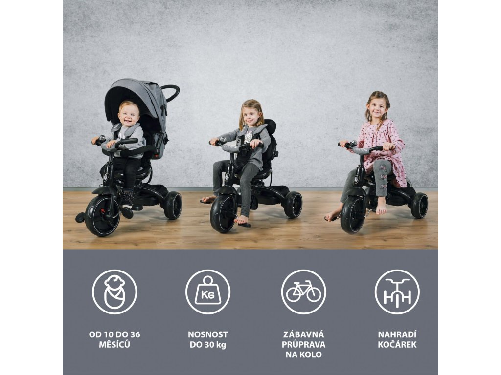 Multifunkční tříkolka 7 v 1Tříkolka představuje zábavnou alternativu ke kočárku a zároveň je mostem k odrážedlům a klasickým kolům. S možností upravit výšku vodící tyče a...